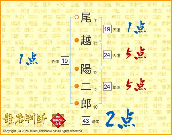 尾越陽二郎さんの総運は43画の2点!