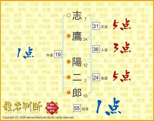 志鷹陽二郎さんの総運は55画の1点!