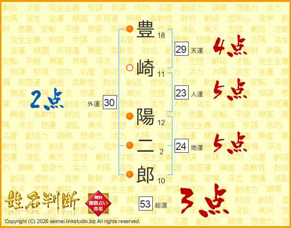 豊崎陽二郎さんの人運は23画の5点!