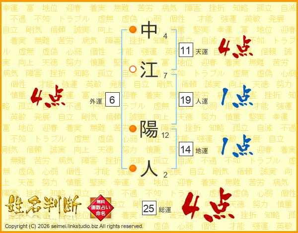 中江陽人さんの総運は25画の4点!