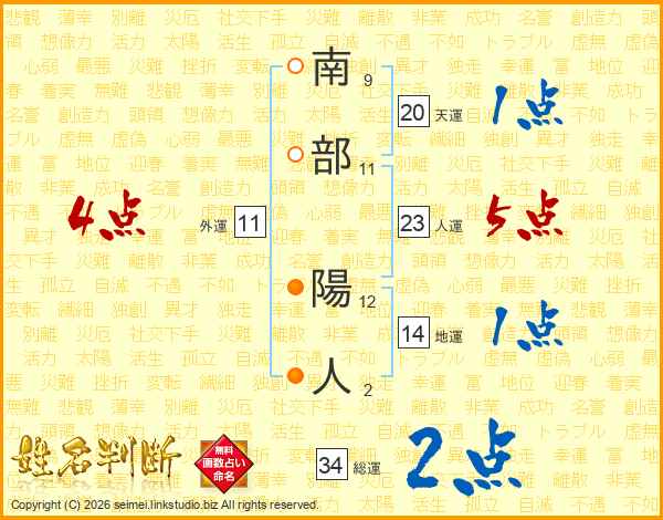 南部陽人さんの人運は23画の5点!