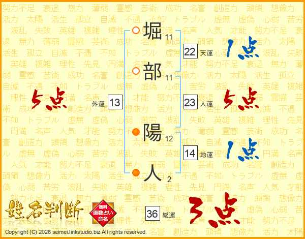 堀部陽人さんの外運は13画の5点!