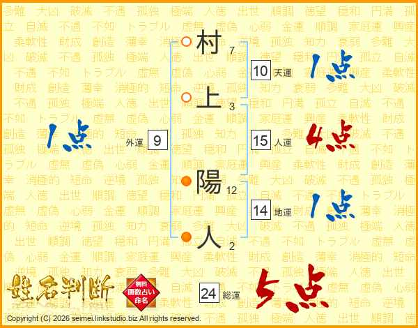 村上陽人さんの総運は24画の5点!