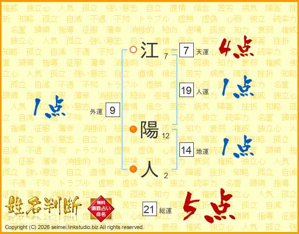 江陽人さんの総運は21画の5点!