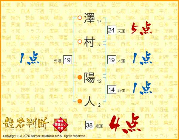 澤村陽人さんの総運は38画の4点!
