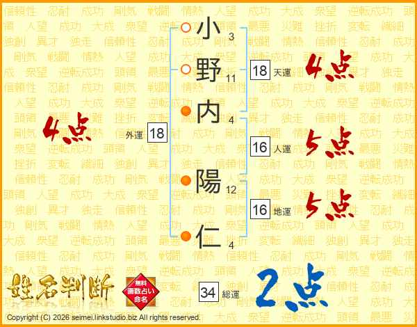 小(3画)野(11画)内(4画) 陽(12画)仁(4画)