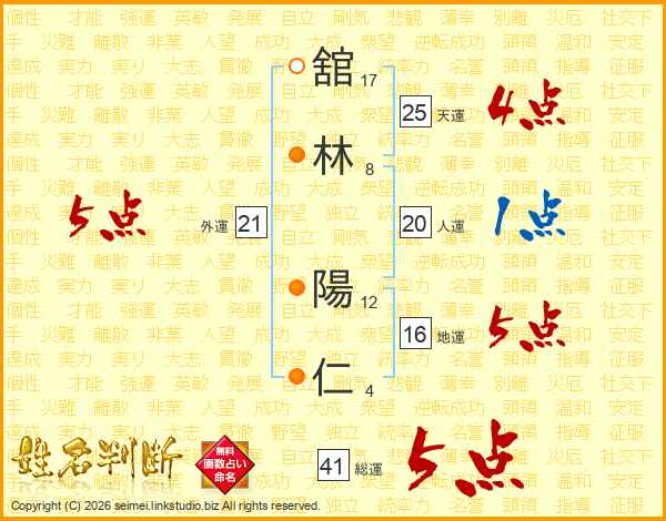 舘(17画)林(8画) 陽(12画)仁(4画)