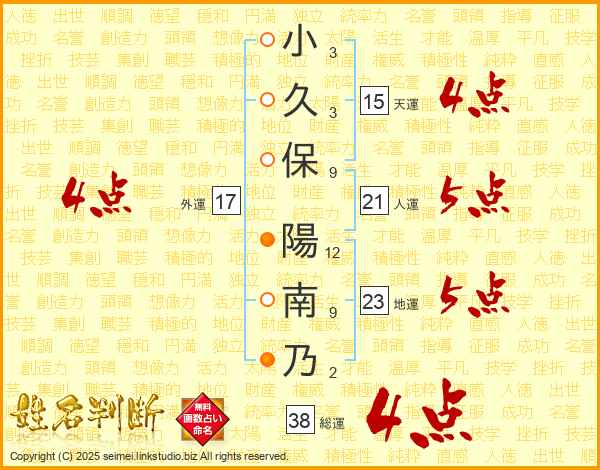 小久保陽南乃さんの外運は17画の4点!