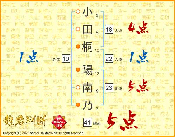 小(3画)田(5画)桐(10画) 陽(12画)南(9画)乃(2画)