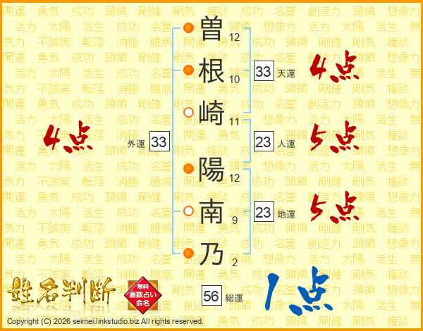 曽根崎陽南乃さんの外運は33画の4点!