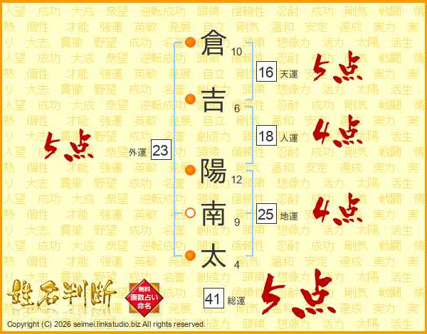倉吉陽南太さんの天運は16画の5点!