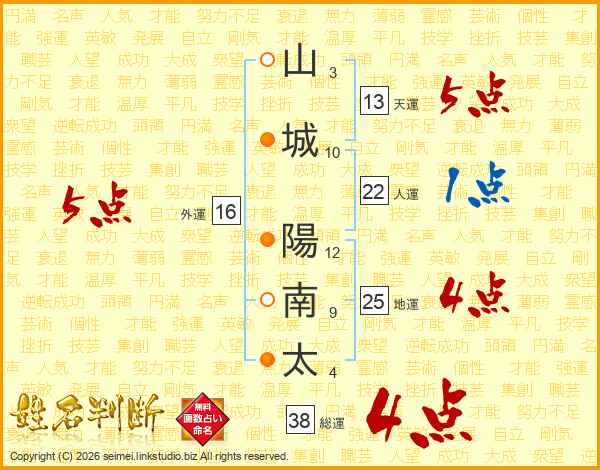 山(3画)城(10画) 陽(12画)南(9画)太(4画)