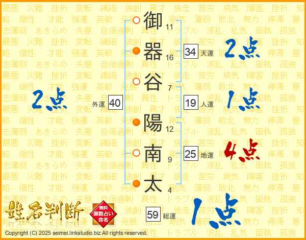 御(11画)器(16画)谷(7画) 陽(12画)南(9画)太(4画)