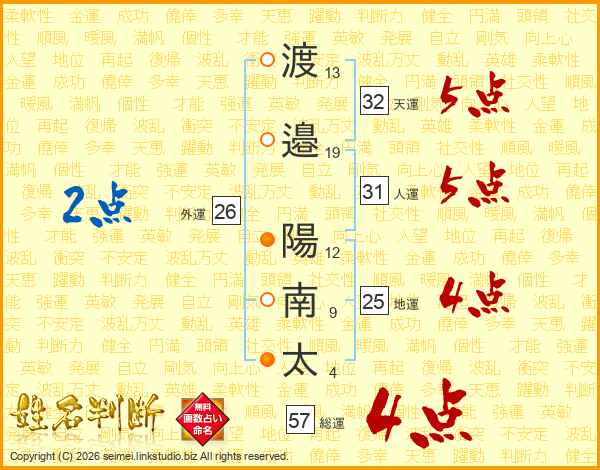 渡邉陽南太さんの天運は32画の5点!