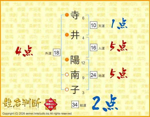 寺井陽南子さんの人運は16画の5点!