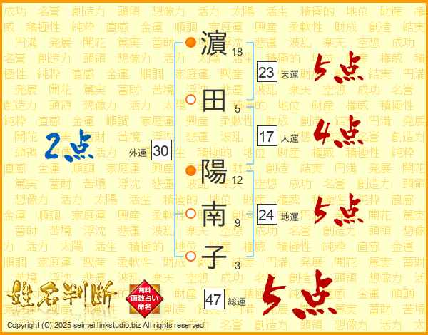 濵(18画)田(5画) 陽(12画)南(9画)子(3画)