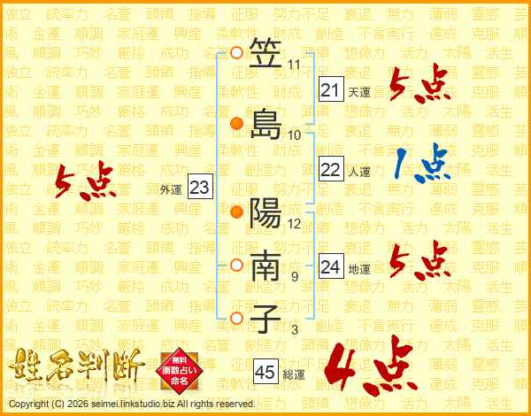 笠(11画)島(10画) 陽(12画)南(9画)子(3画)