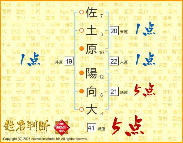 佐土原陽向大さんの地運は21画の5点!