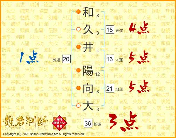 和(8画)久(3画)井(4画) 陽(12画)向(6画)大(3画)