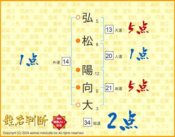 弘(5画)松(8画) 陽(12画)向(6画)大(3画)