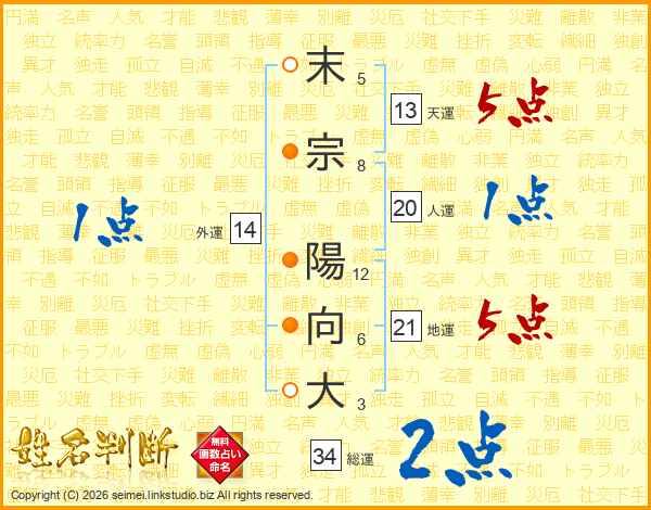 末(5画)宗(8画) 陽(12画)向(6画)大(3画)