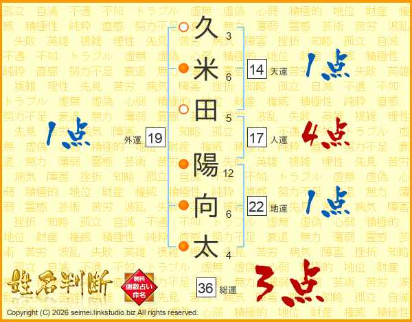 久米田陽向太さんの天運は14画の1点!