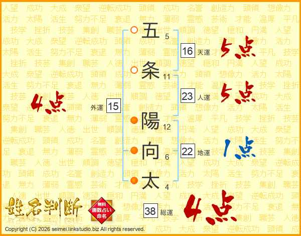 五(5画)条(11画) 陽(12画)向(6画)太(4画)
