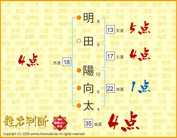 明田陽向太さんの総運は35画の4点!