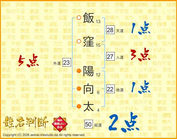 飯窪陽向太さんの総運は50画の2点!