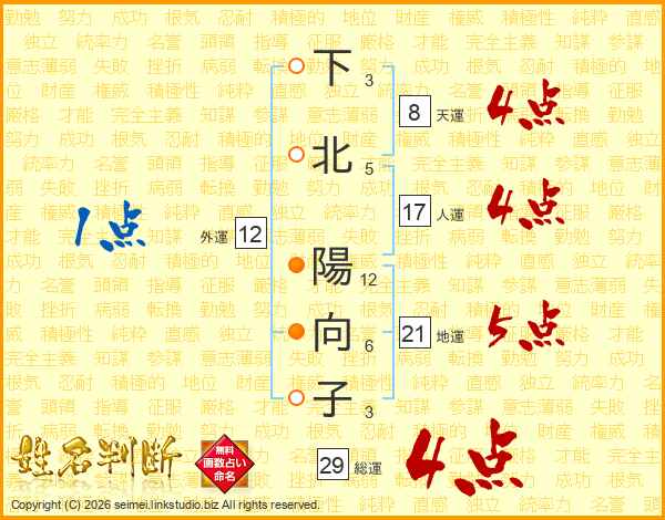 下北陽向子さんの総運は29画の4点!