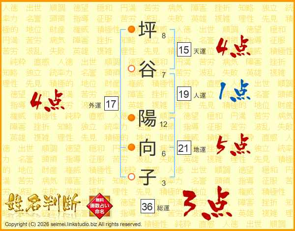坪(8画)谷(7画) 陽(12画)向(6画)子(3画)