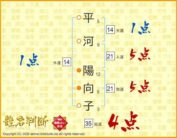 平河陽向子さんの総運は35画の4点!