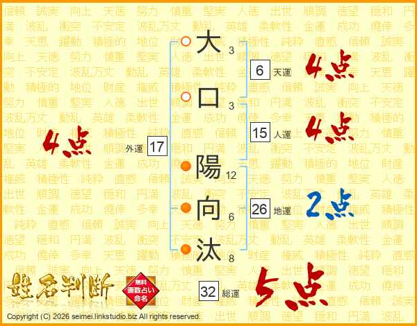 大口陽向汰さんの外運は17画の4点!