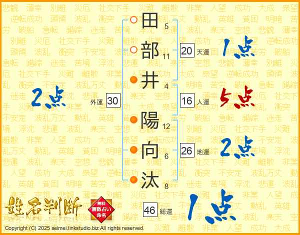 田部井陽向汰さんの地運は26画の2点!