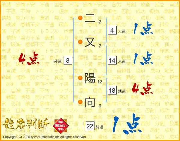 二又陽向さんの総運は22画の1点!