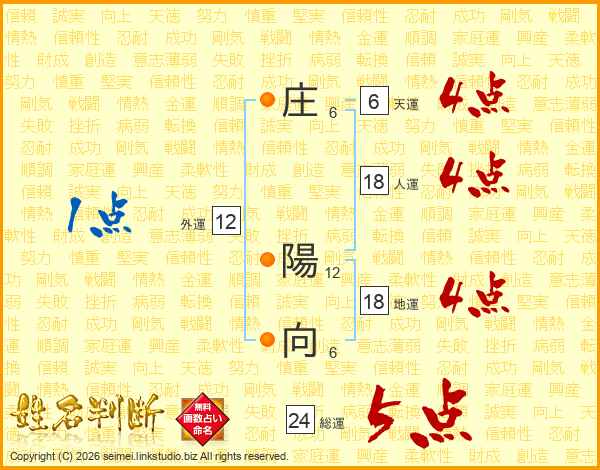 庄陽向さんの総運は24画の5点!