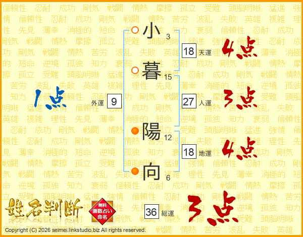 小暮陽向さんの総運は36画の3点!