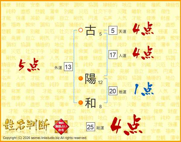 古陽和さんの総運は25画の4点!