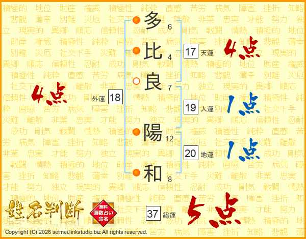 多比良陽和さんの総運は37画の5点!