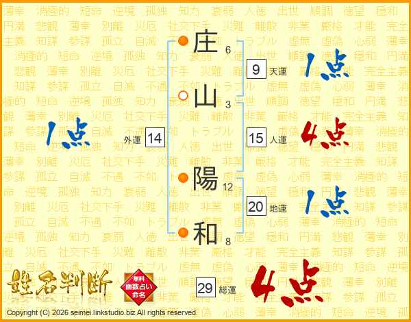 庄山陽和さんの総運は29画の4点!