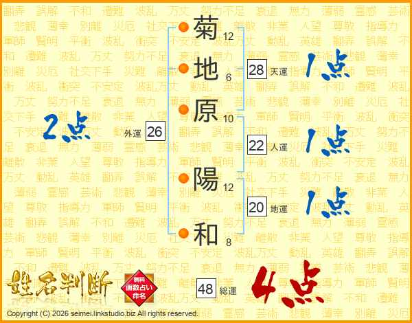 菊(12画)地(6画)原(10画) 陽(12画)和(8画)