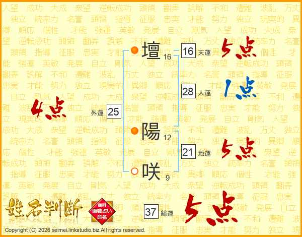 壇陽咲さんの総運は37画の5点!