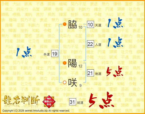 脇陽咲さんの総運は31画の5点!
