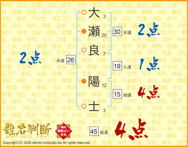 大瀬良陽士さんの総運は45画の4点!