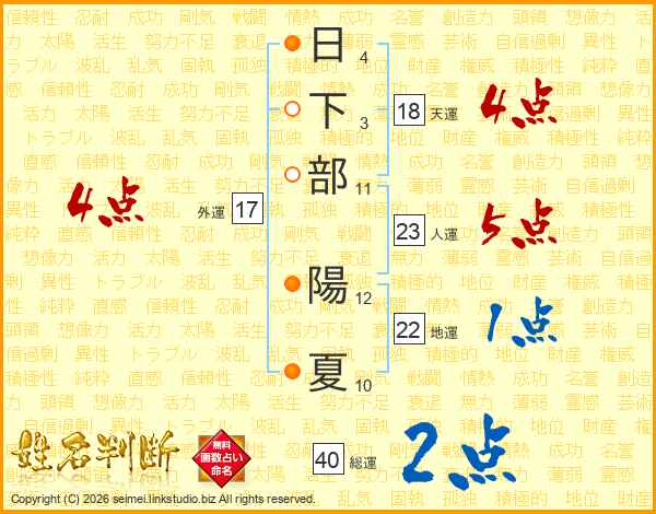 日(4画)下(3画)部(11画) 陽(12画)夏(10画)