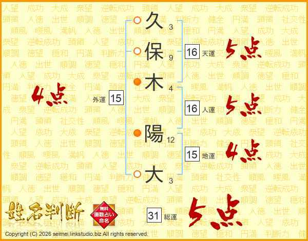 久(3画)保(9画)木(4画) 陽(12画)大(3画)