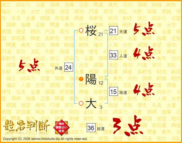 桜陽大さんの総運は36画の3点!