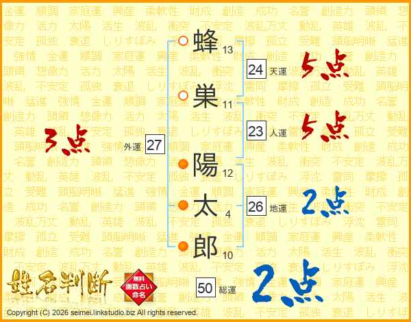 蜂巣陽太郎さんの総運は50画の2点!