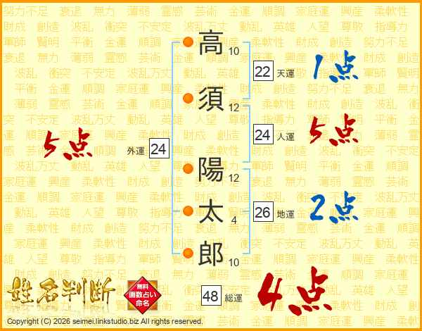 高(10画)須(12画) 陽(12画)太(4画)郎(10画)