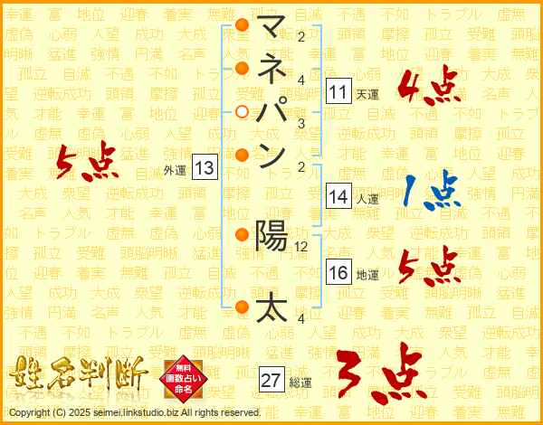 マネパン陽太さんの総運は27画の3点!
